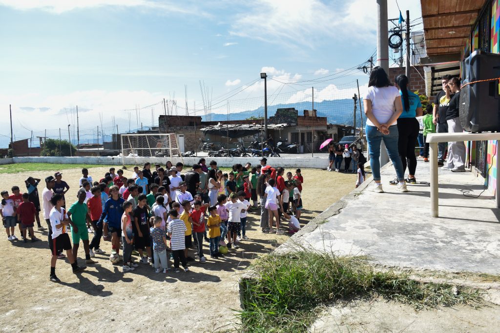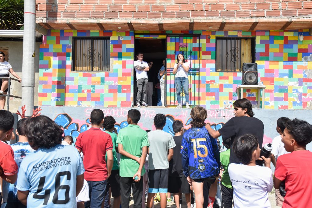 La actividad inició con la inspiradora historia de la fundadora de Sembrando Paz y Esperanza en las comunas, quien hace dos décadas transformó un basurero en la cancha de fútbol que hoy es refugio de cientos de niños.